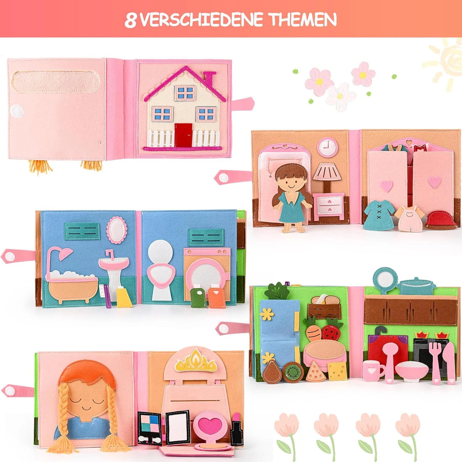 Avant, les moments calmes étaient difficiles à instaurer. Maintenant, ce livre bébé en tissus crée naturellement des instants de concentration. Les activités représentent des scènes du quotidien que votre enfant reconnaît et reproduit avec fierté. Les attaches, boutons et scratchs renforcent sa dextérité tout en lui apprenant les gestes de la vie de tous les jours.